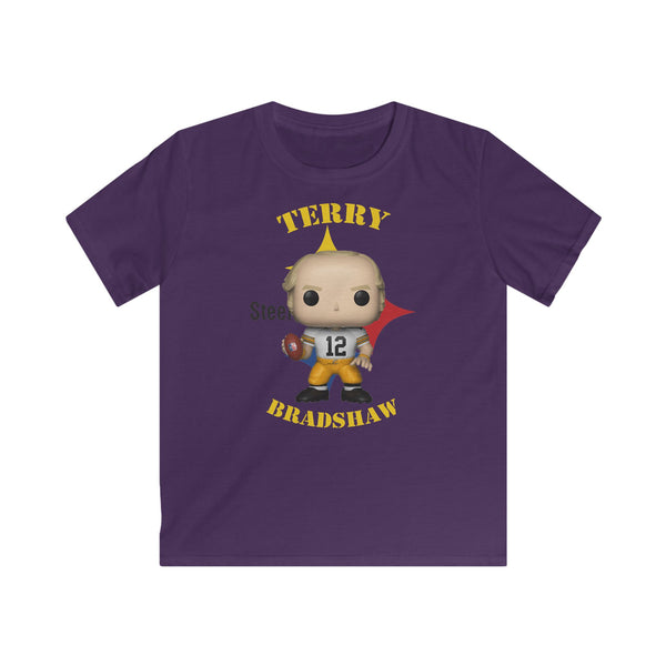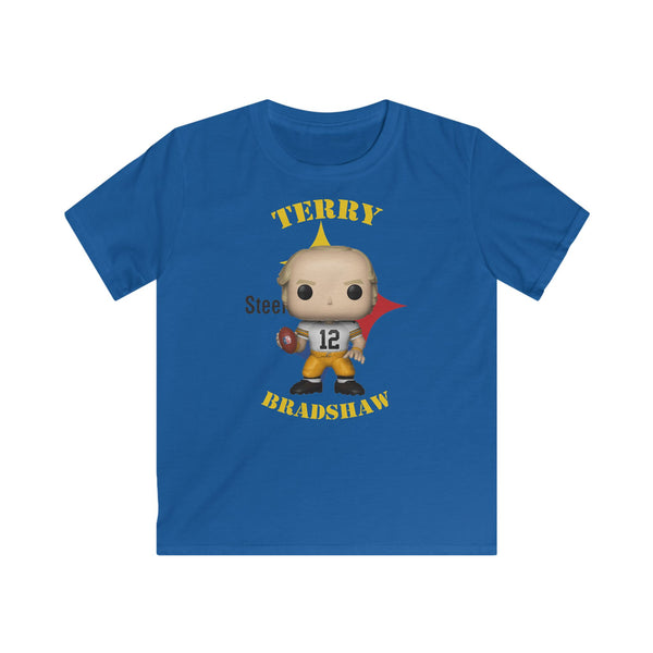 Terry Bradshaw Pittsburgh Steelers (White), Kids Gildan Softstyle Tee Shirt